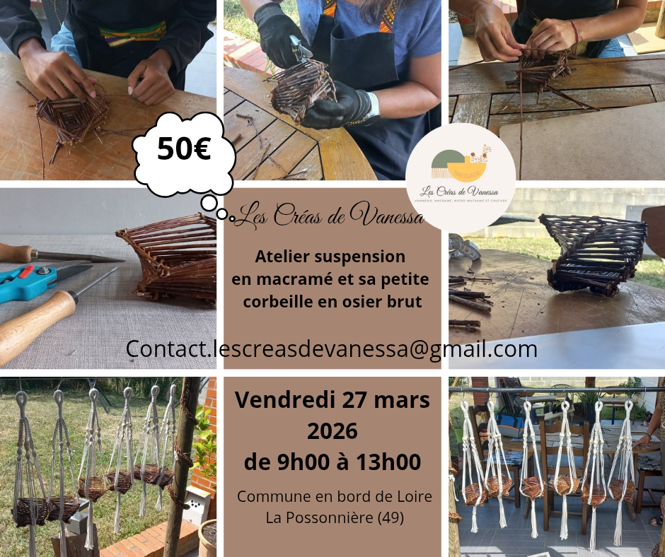 Et oui vanessa, infirmière, vannière et puis osiéricultrice. Venez découvrir mon univers, ma passion, partageons ensemble, faisons un pas de côté, prenons du temps pour soi. Je réponds également à vos demandes personnalisées, commandes sur mesure. Vous me rencontrez parfois auprès de différents évènements, marchés artisanaux, de créateurs, médiévaux dans la région.
